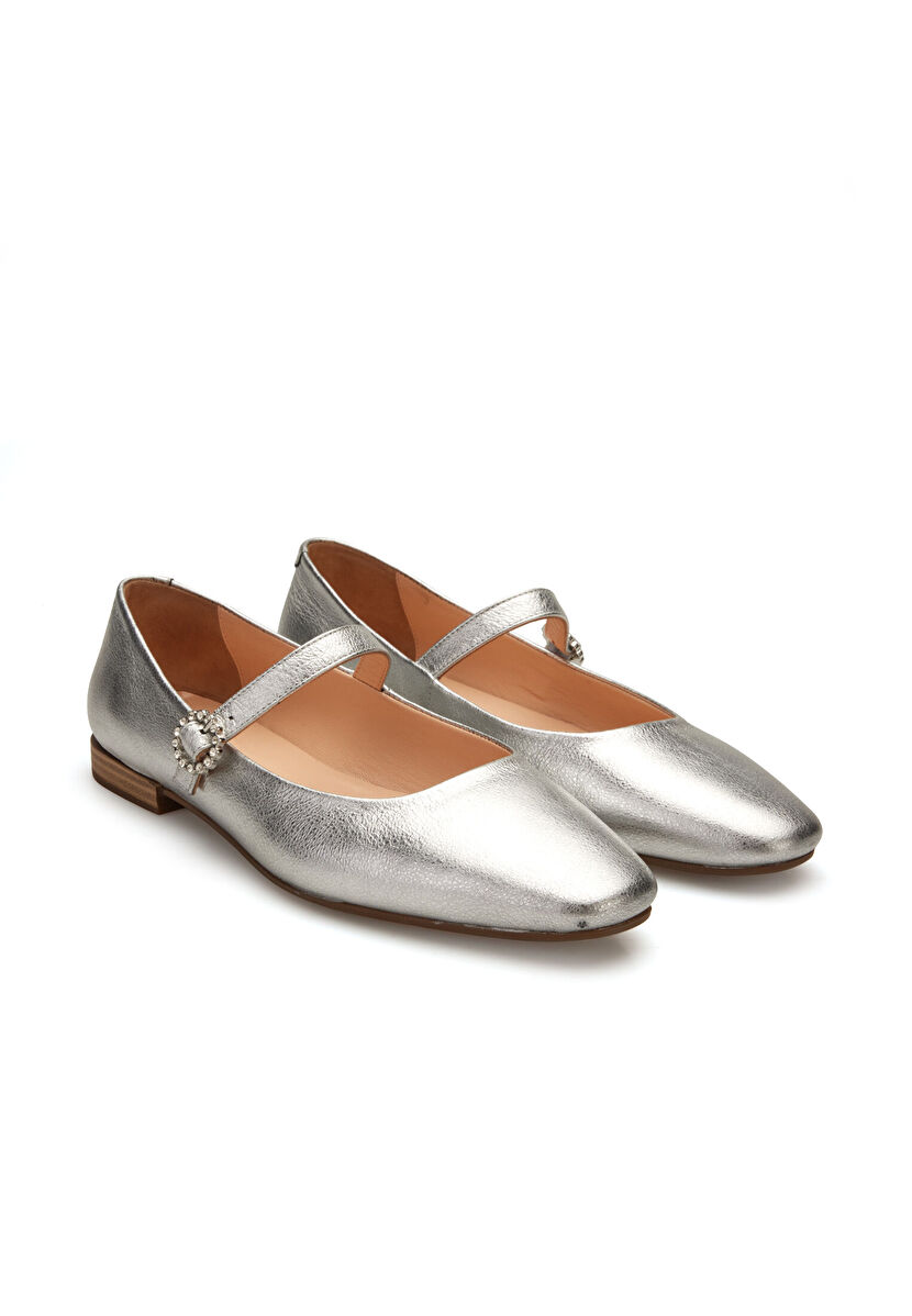 Grey Leather Strapped Ballerinas