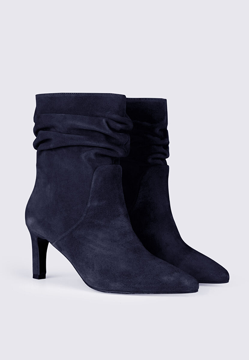 Navy Blue Suede Heeled Boots