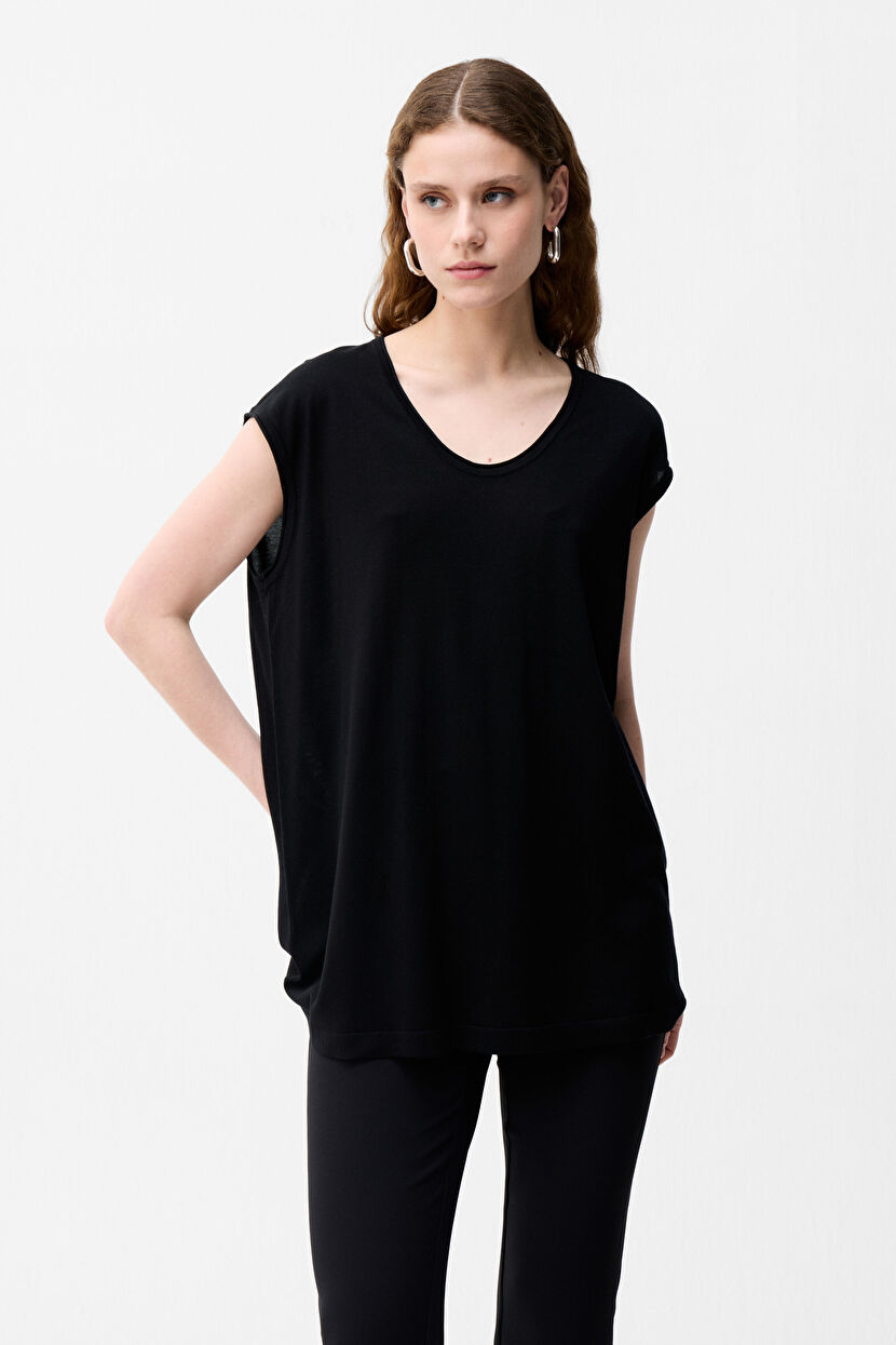 Black Short Sleeve Knitwear Blouse
