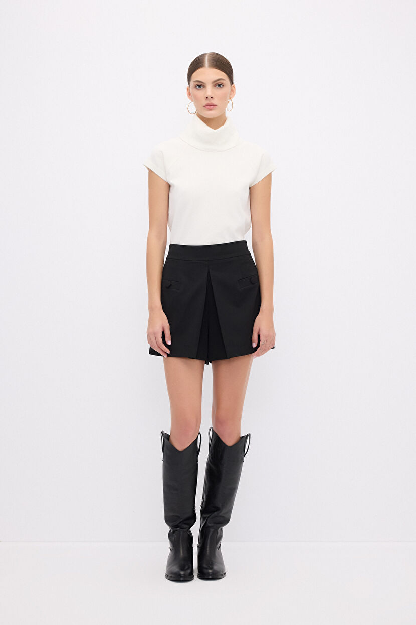 Black Pleated Detail Shorts