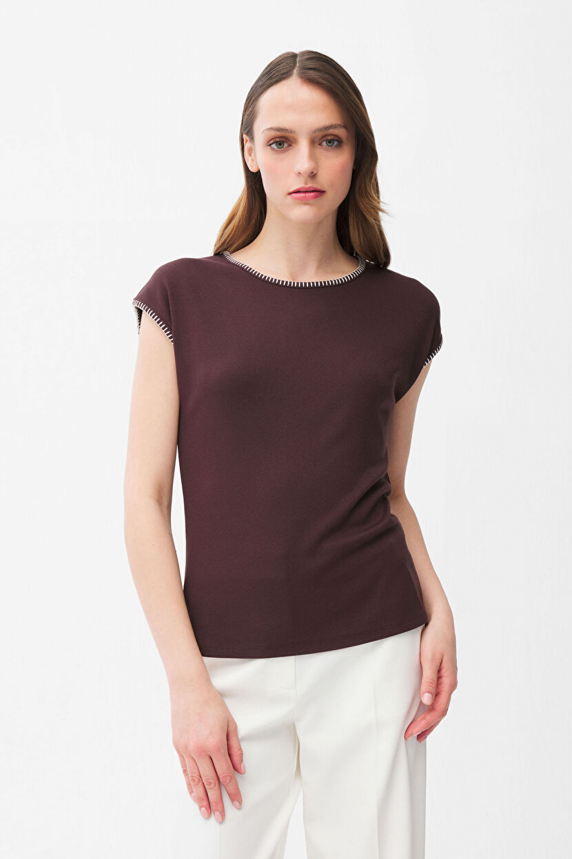 Brown Embroidered collar blouse