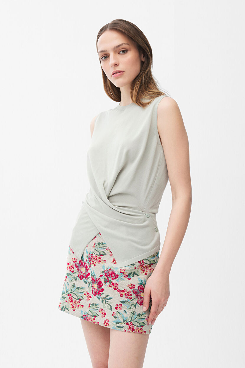 Green Sleeveless Knitwear Blouse with Binding Detail