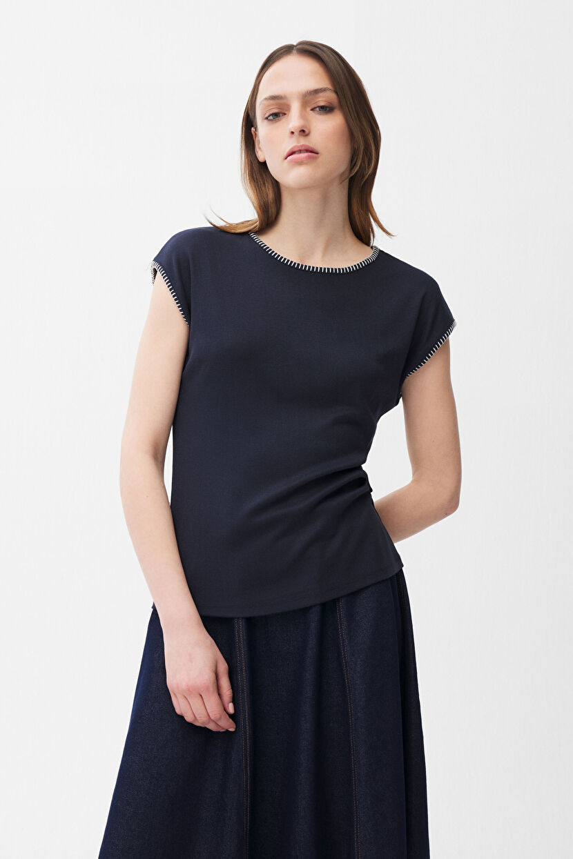 Navy Blue Embroidered collar blouse