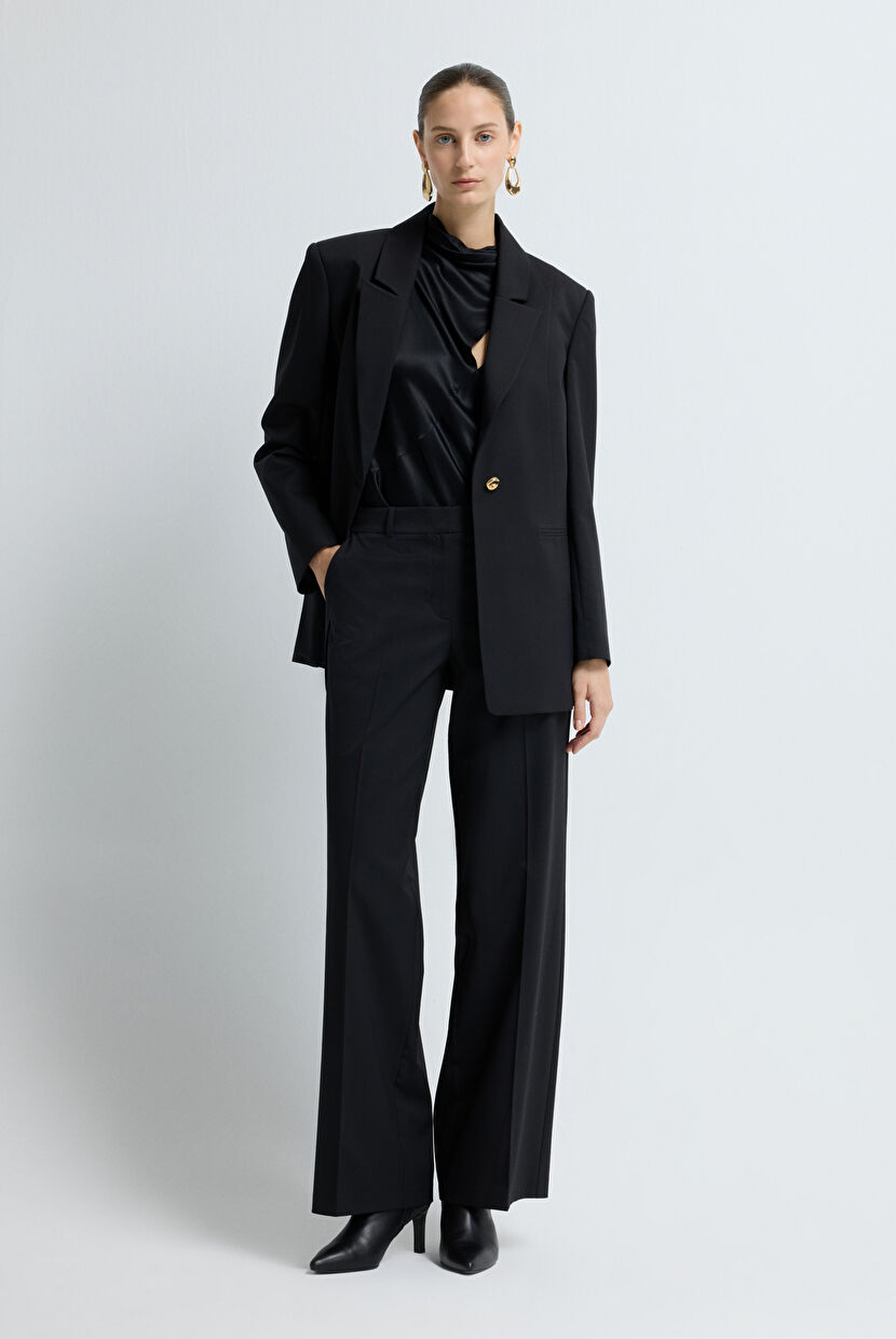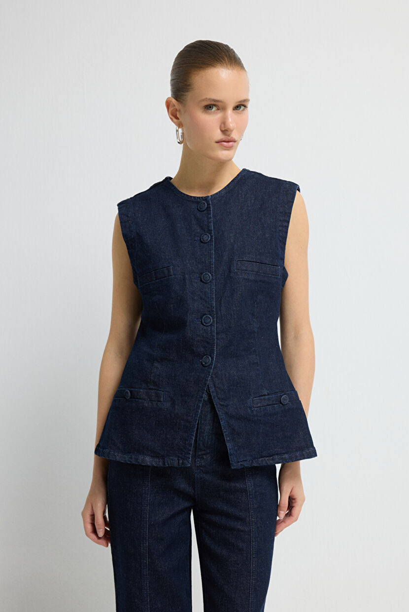 Navy Blue Trousers with Side Pockets and Slit Legs