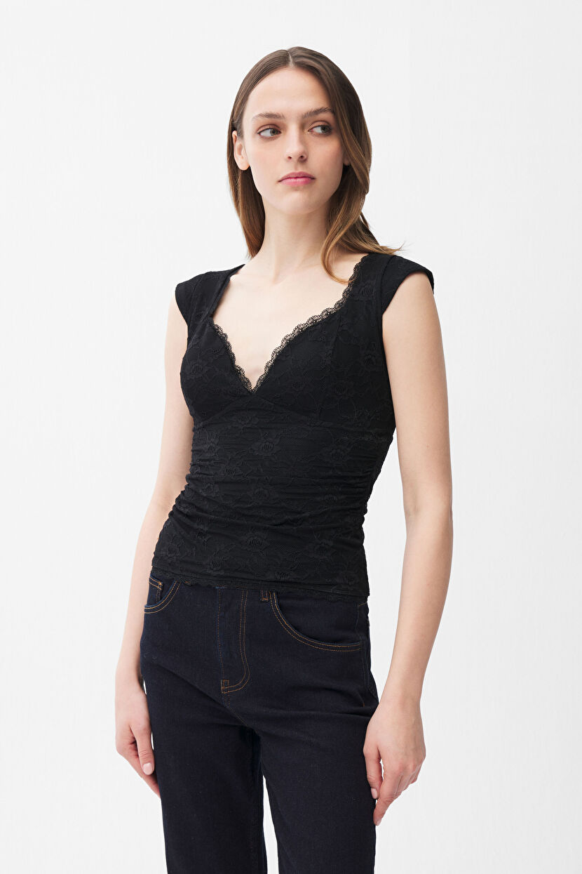 Black Sleeveless lace blouse