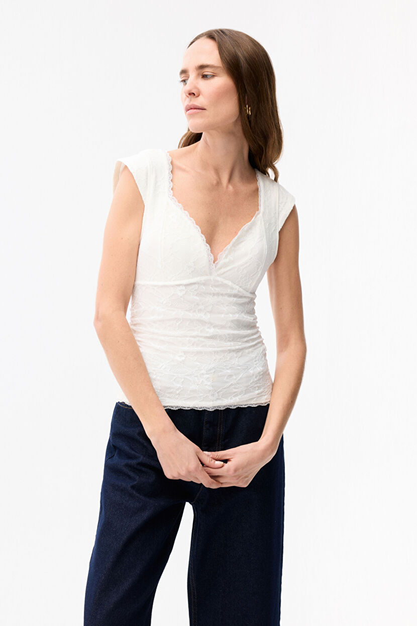 Vanilla Sleeveless lace blouse