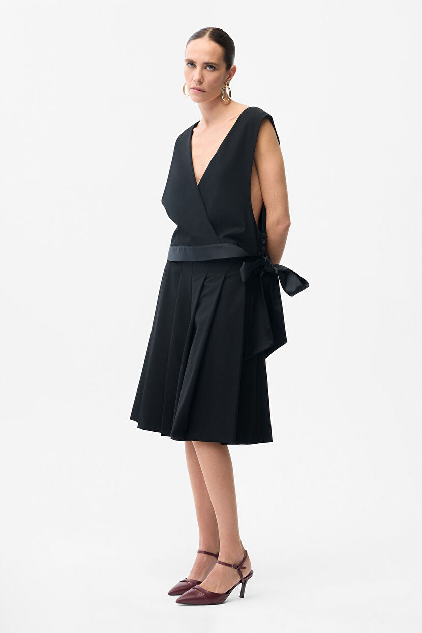Black Pleated Short Skirt
