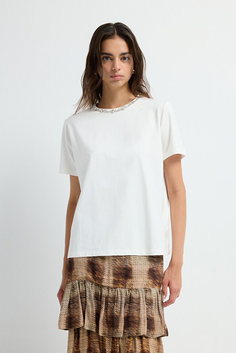 Bone Embelished Collar T-Shirt