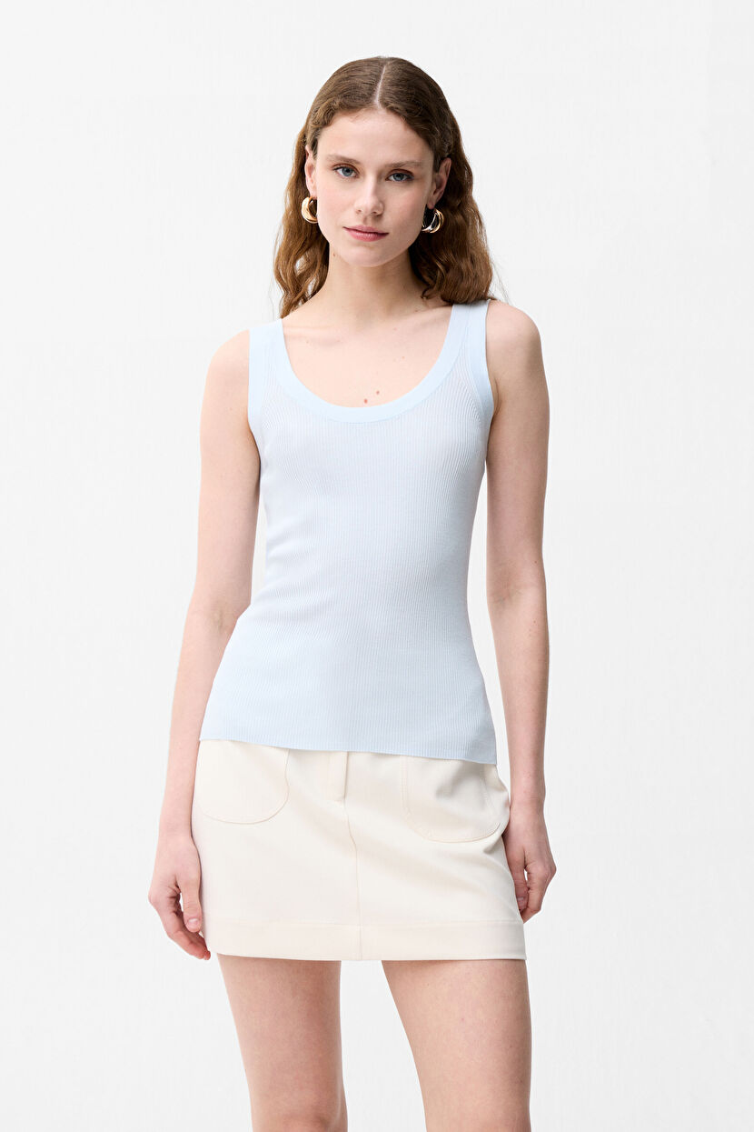 Blue Sleeveless Knitwear Undershirt