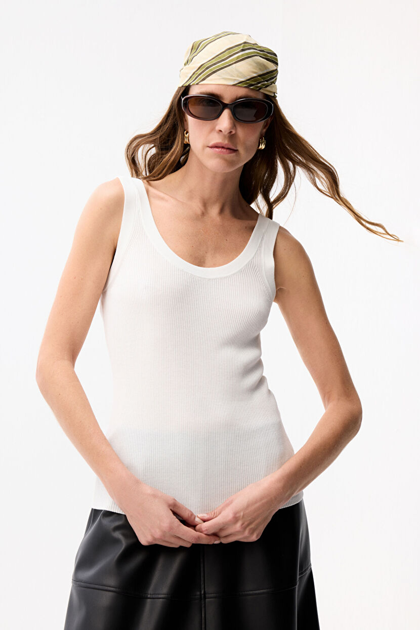 Ecru Sleeveless Knitwear Undershirt