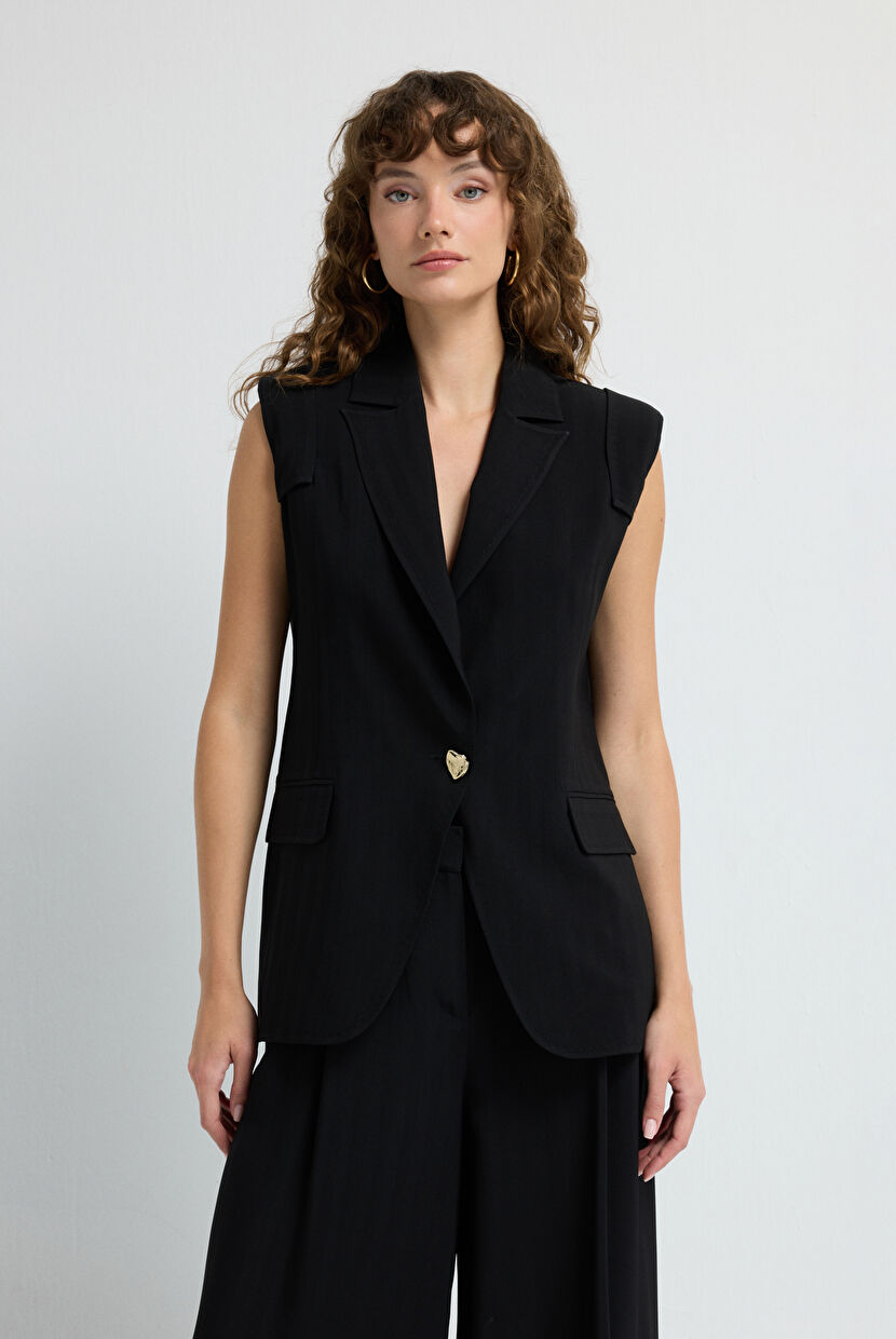 Black Vest with Pocket Flap