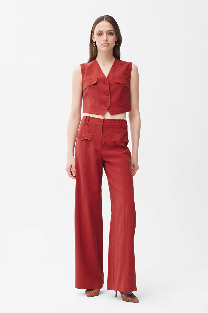 Brown Wide Leg Trousers with Pocket Details