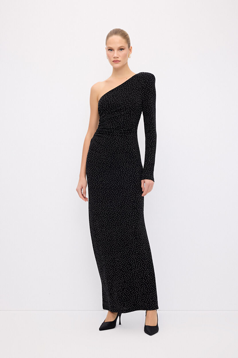 Siyah Mert Aslan Asimetrik Örme Elbise