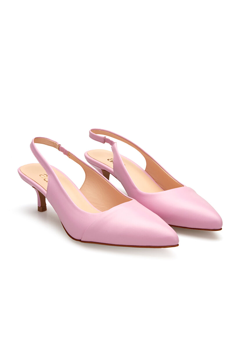 Pembe Deri Kısa Topuklu Arkası Açık Ayakkabı