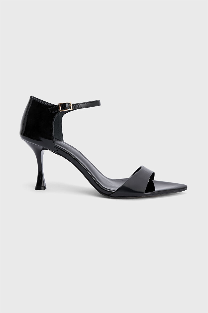 Siyah Rugan Deri Sivri Burun Ayakkabı