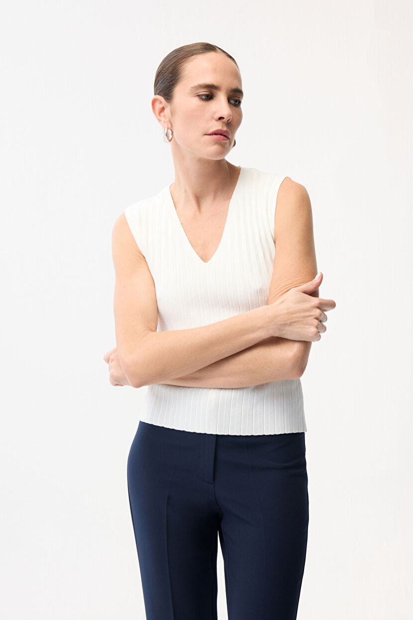 Beyaz V Yaka Triko Bluz