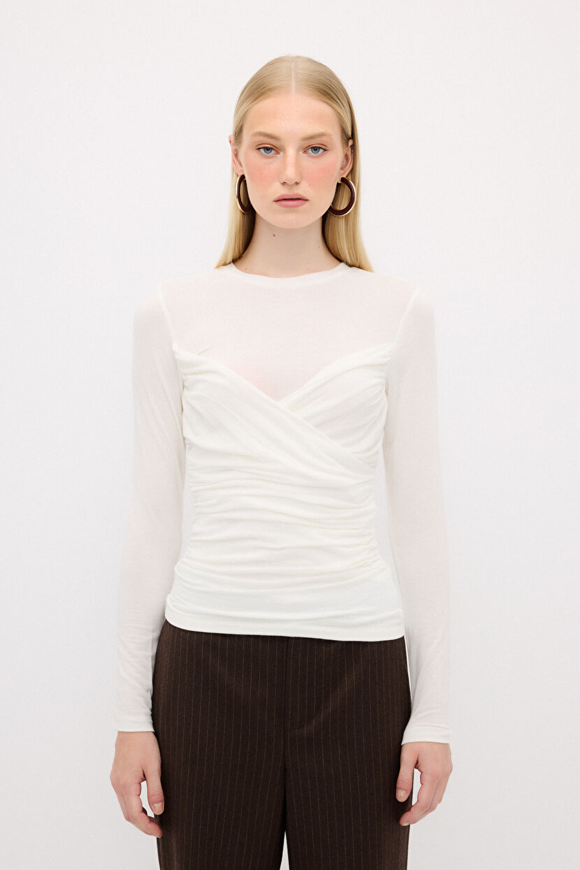 Kemik Büzgülü Örme Bluz