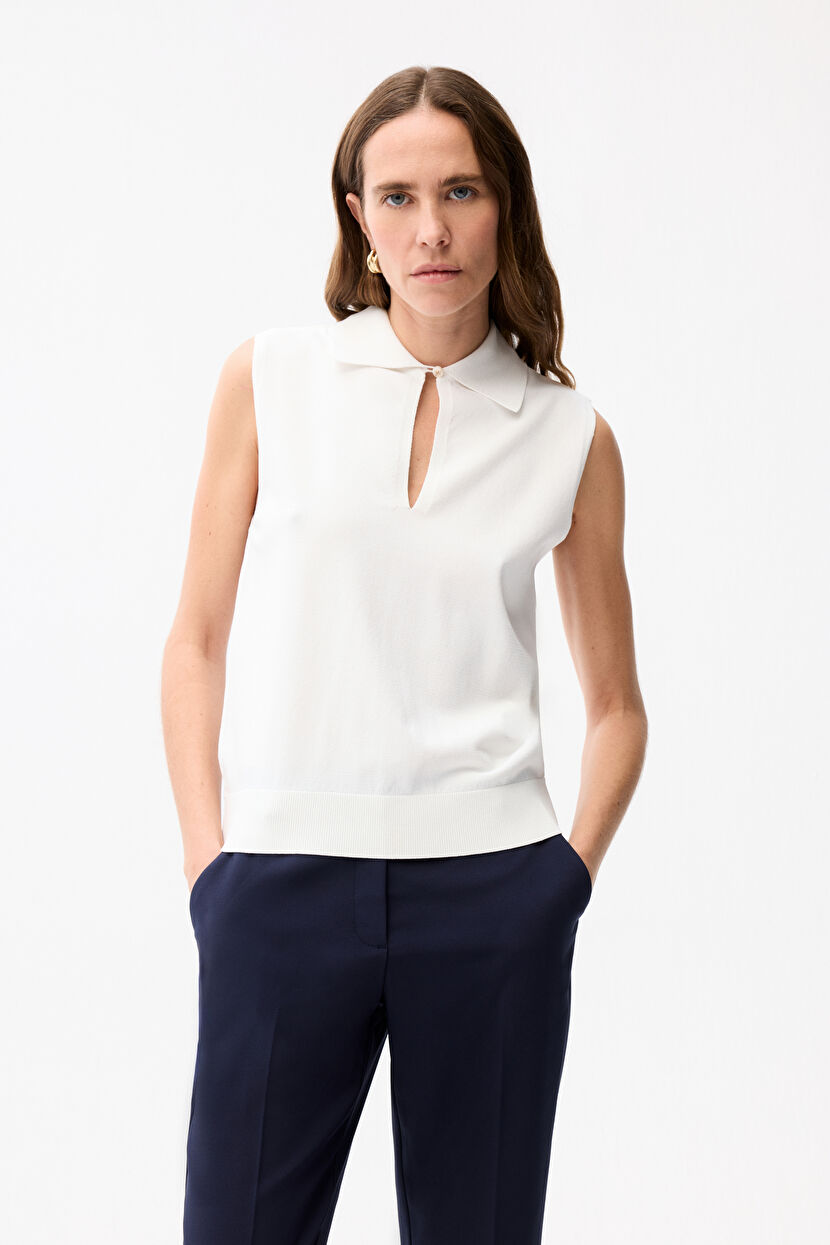 Kemik Damla Detaylı Triko Bluz