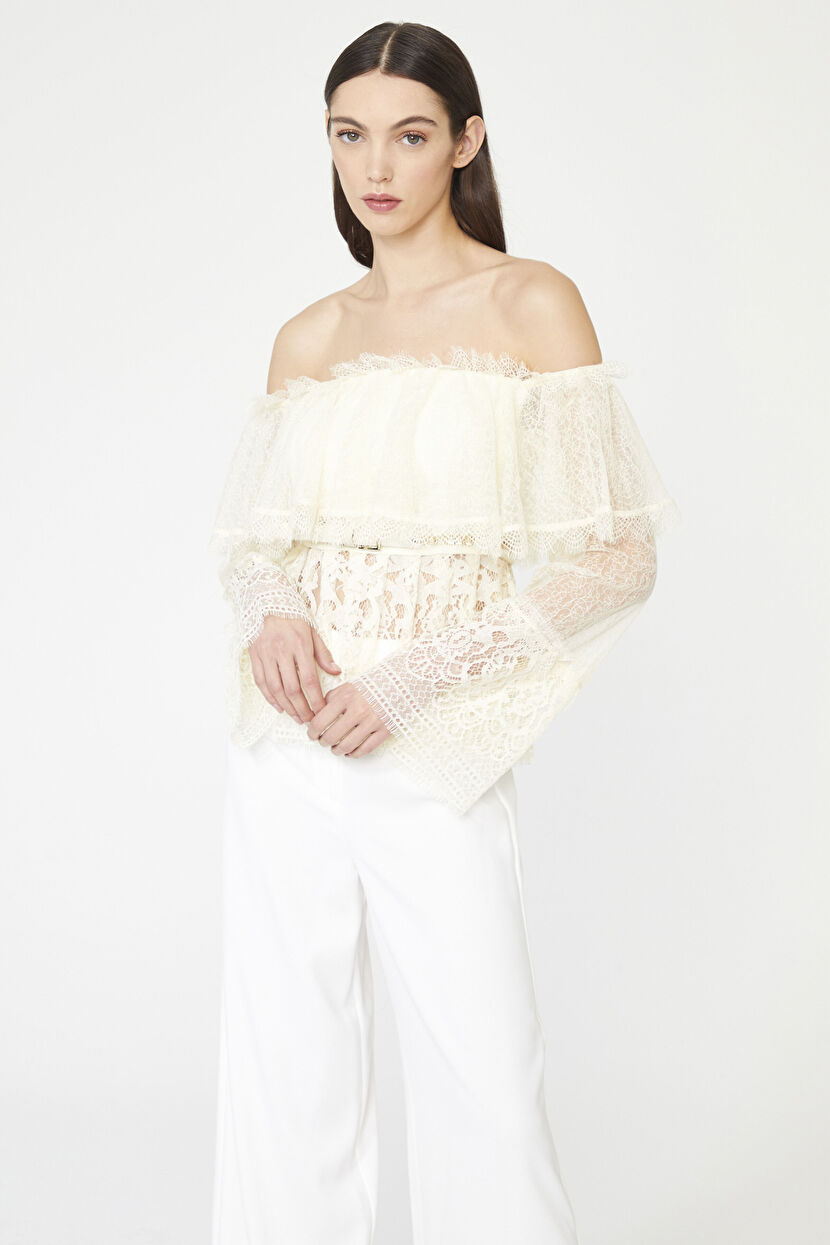 Kemik Night Zoom Oft The Shoulder Kemerli Dantel Bluz