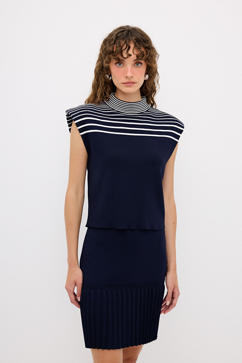 Lacivert Çizgili Triko Bluz