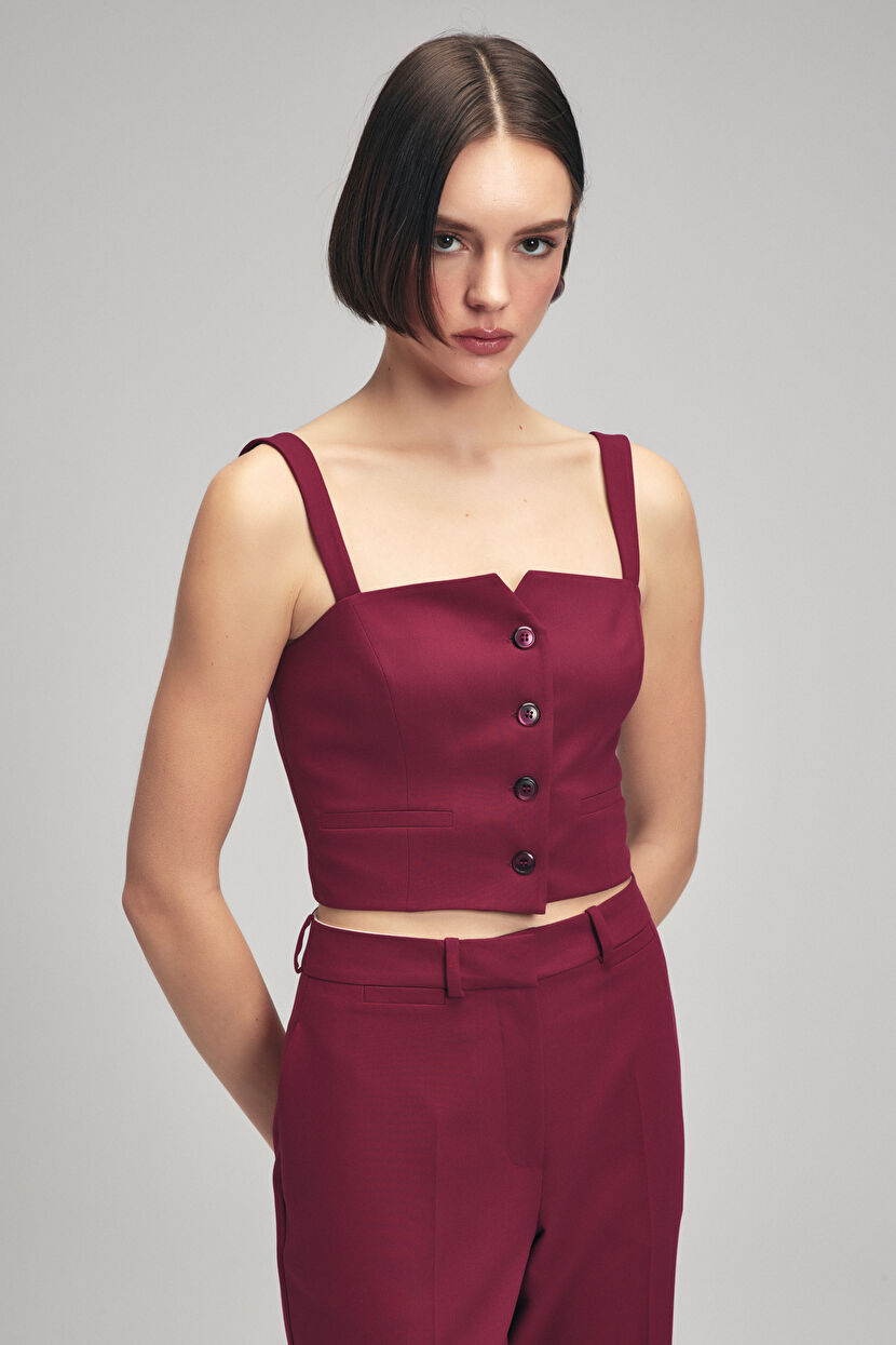 Mürdüm Önü Düğmeli Bluz