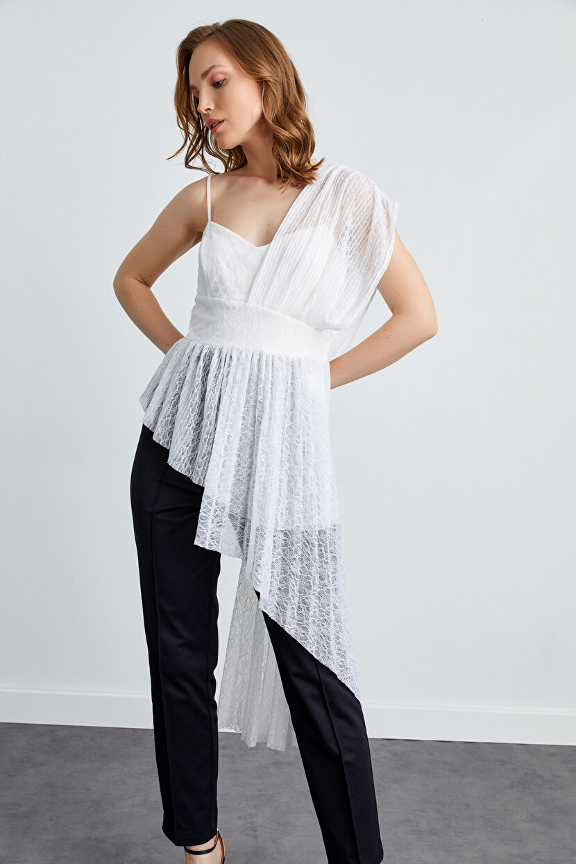Siyah İp Askılı Asimetrik Kesim Bluz