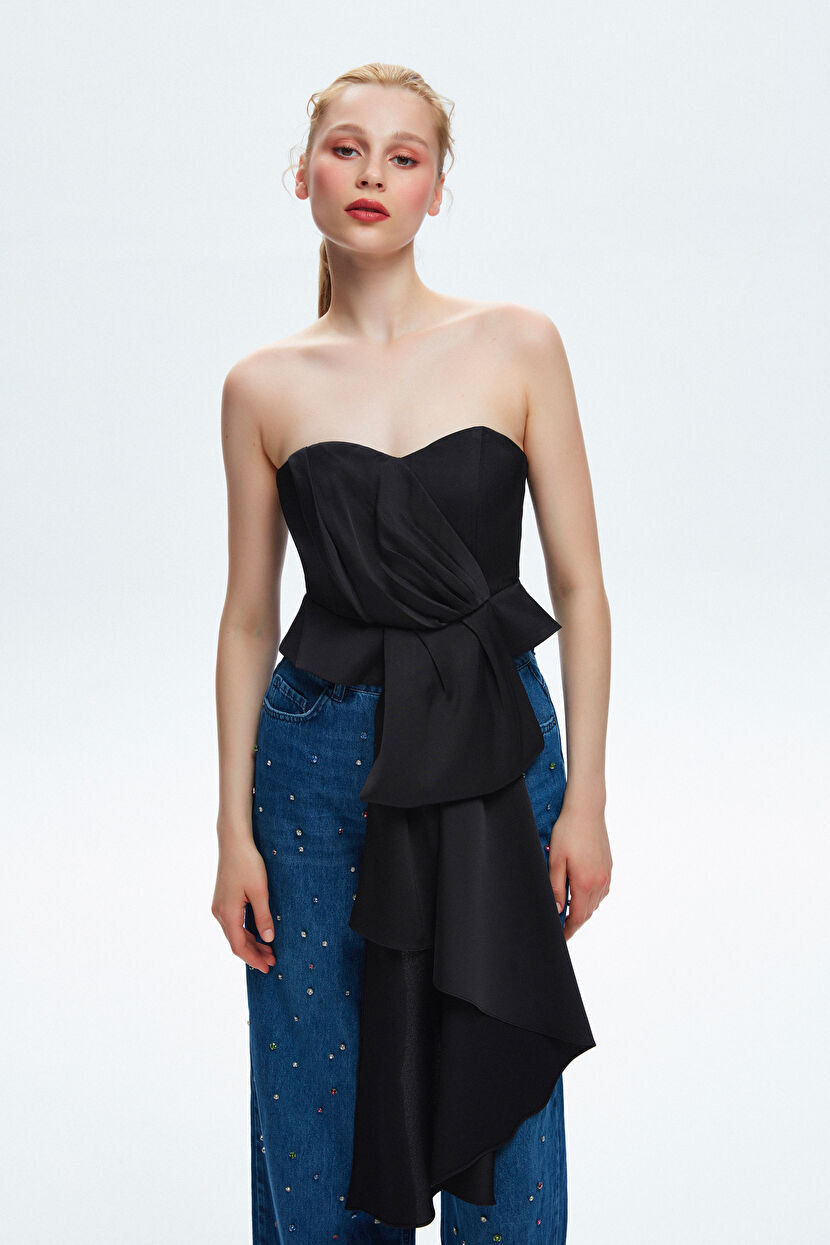 Siyah Mert Aslan Straplez Asimetrik Bluz
