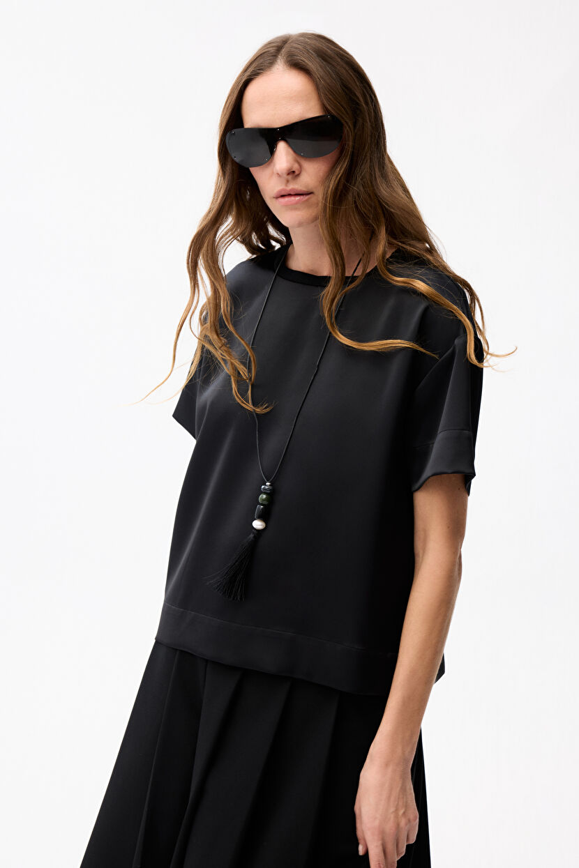 Siyah Yakası Ribanalı Bluz