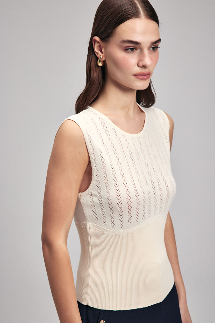 Vanilya Desenli Kolsuz Triko Bluz
