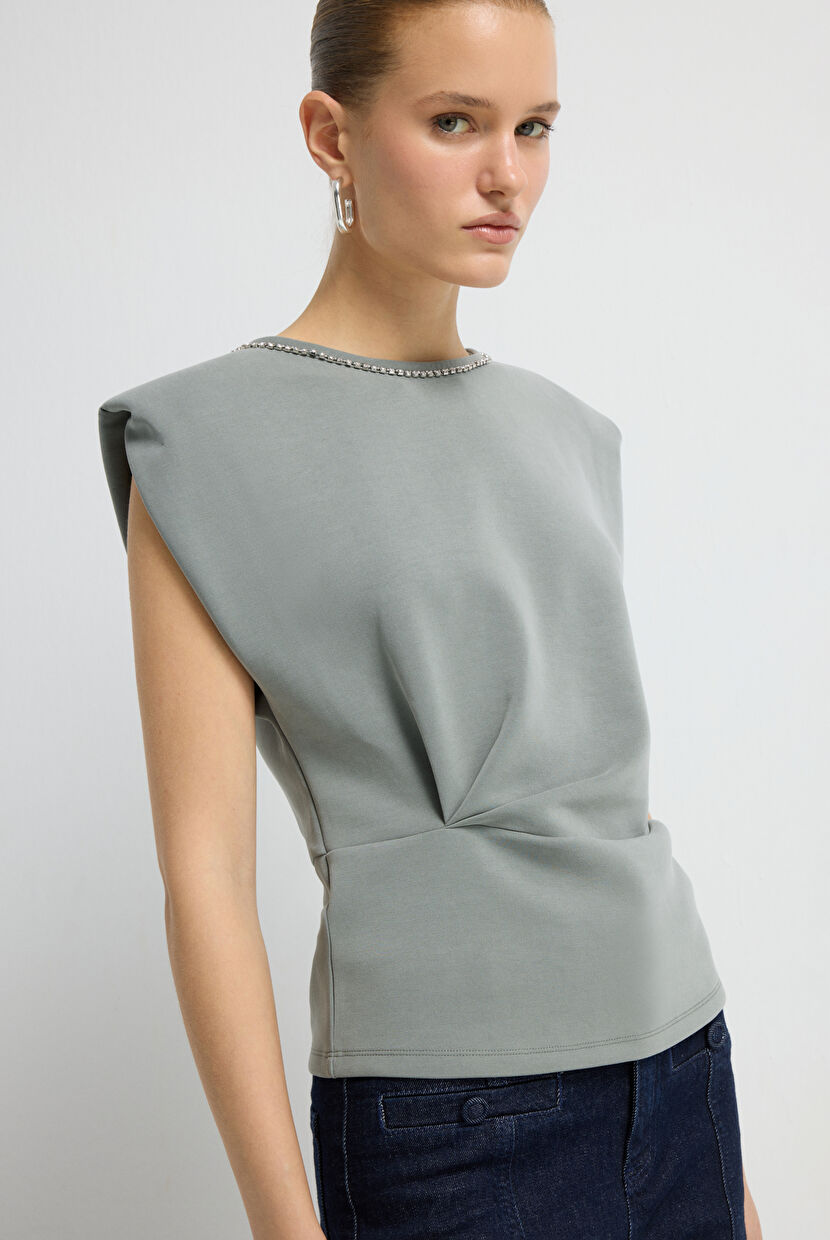 Yeşil Yakası Taşlı Bluz