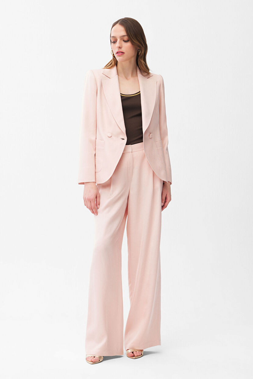 Pembe Pileli Rayon Bol Paça Pantolon
