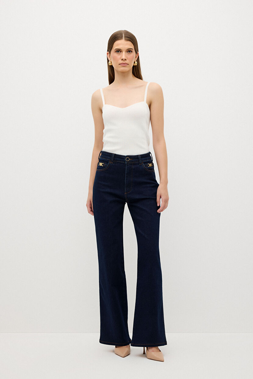 Lacivert Toka Detaylı Denim Pantolon