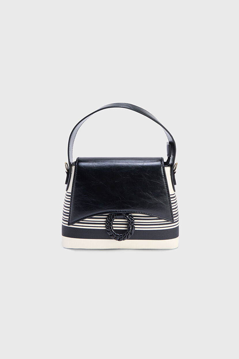 Siyah Çizgi Detaylı Tokalı Çanta