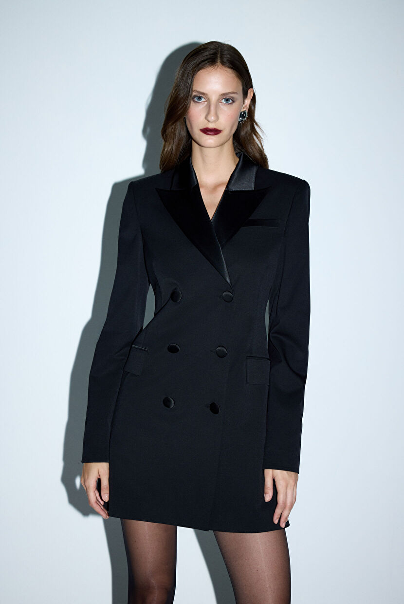 Siyah Yakası Satenli Ceket Elbise