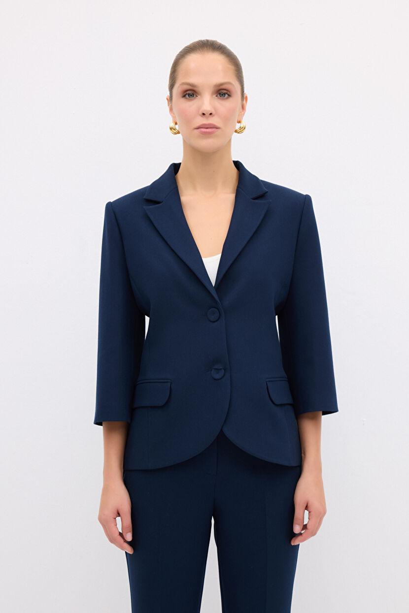 Lacivert Cep Kapaklı 3/4 Kollu Ceket