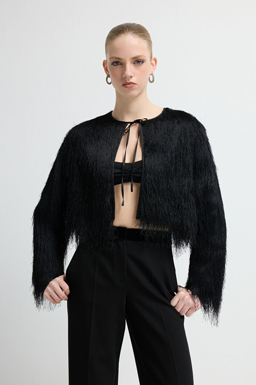 Siyah Püskül Detaylı Ceket