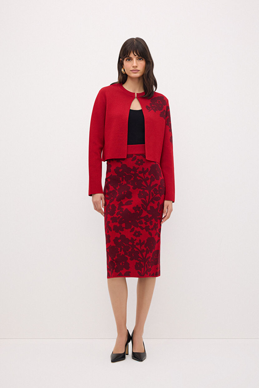 Bordo Desenli Triko Etek