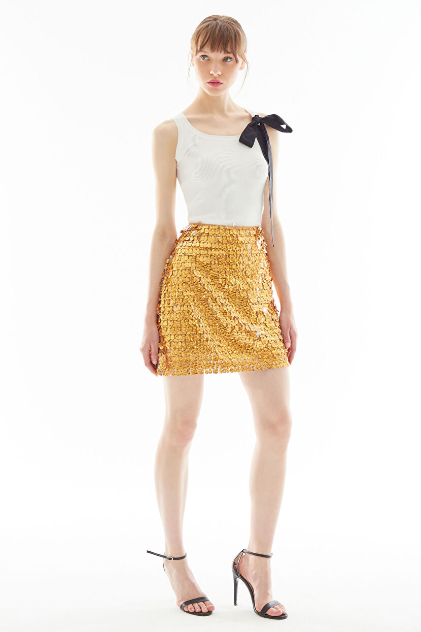 Gold Yüksek Bel Mini Payet Etek