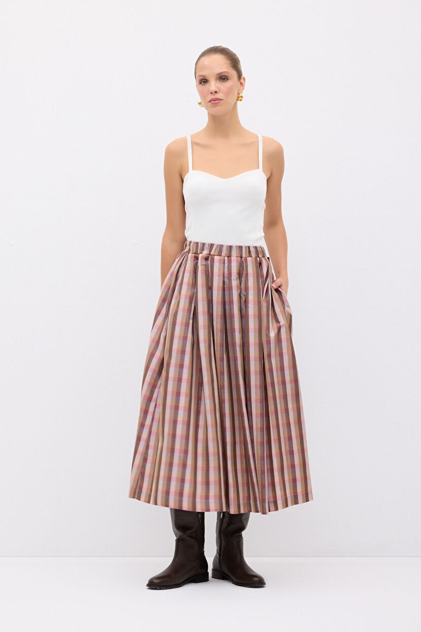 Pembe Ekose Tafta Etek