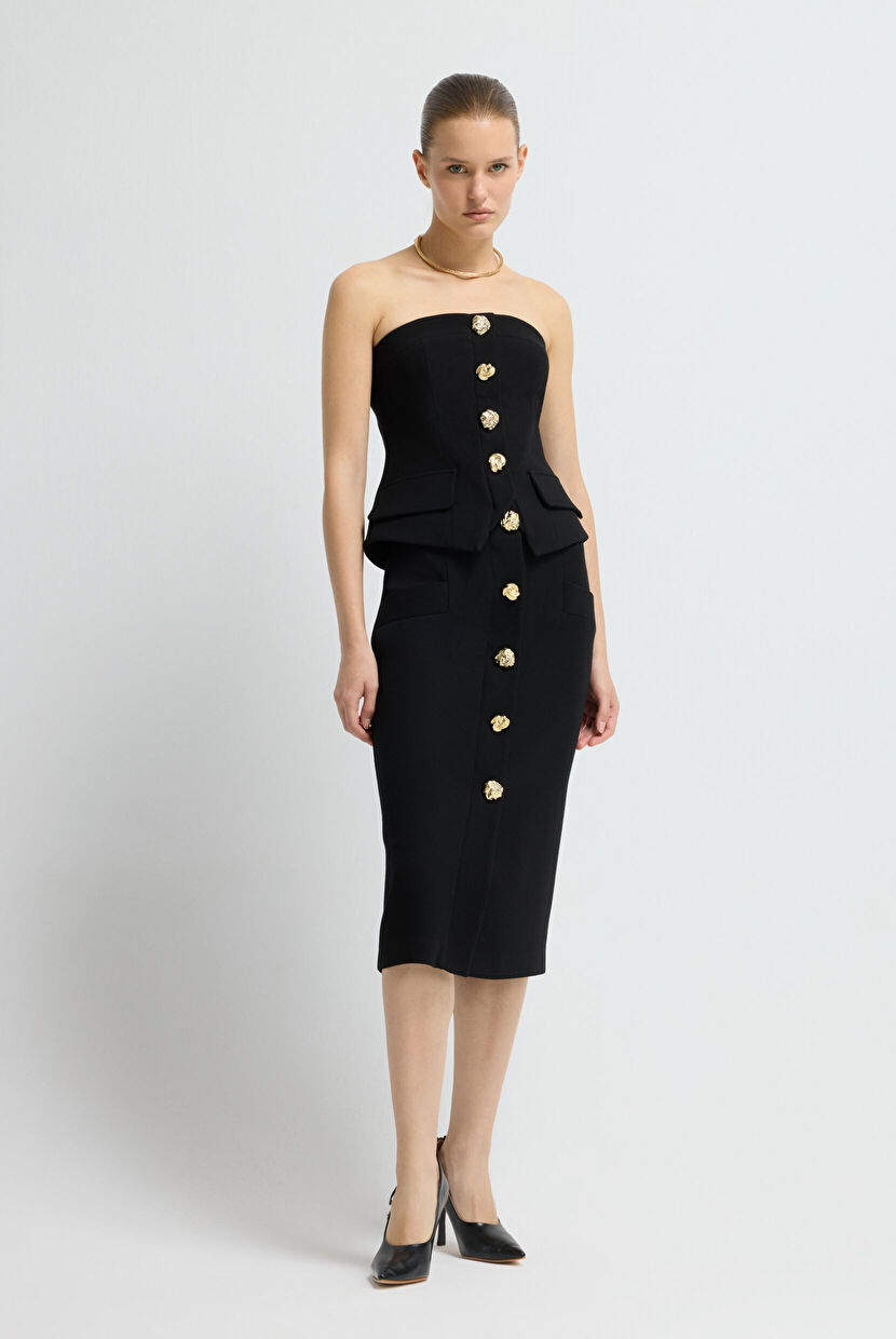 Siyah Gabardin Straplez Yelek