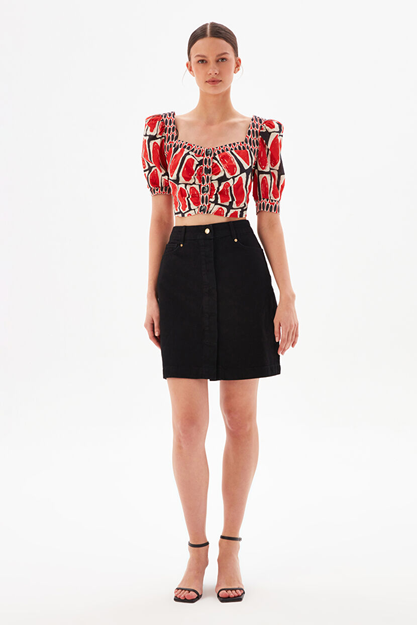 Siyah Önden Düğmeli Etek