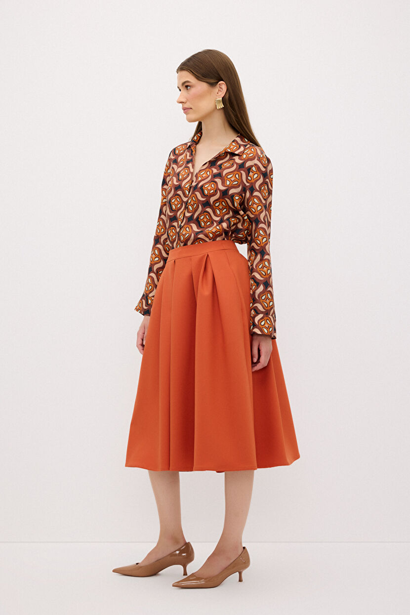 Turuncu Pileli Uzun Etek