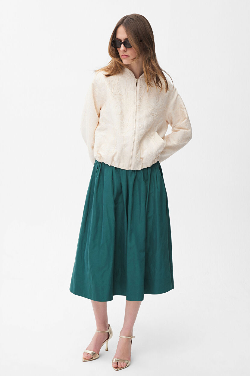 Yeşil Pileli Midi Boy Tafta Etek