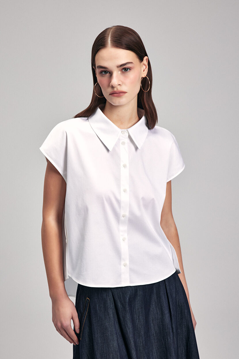 Beyaz Düğme Detaylı Gömlek