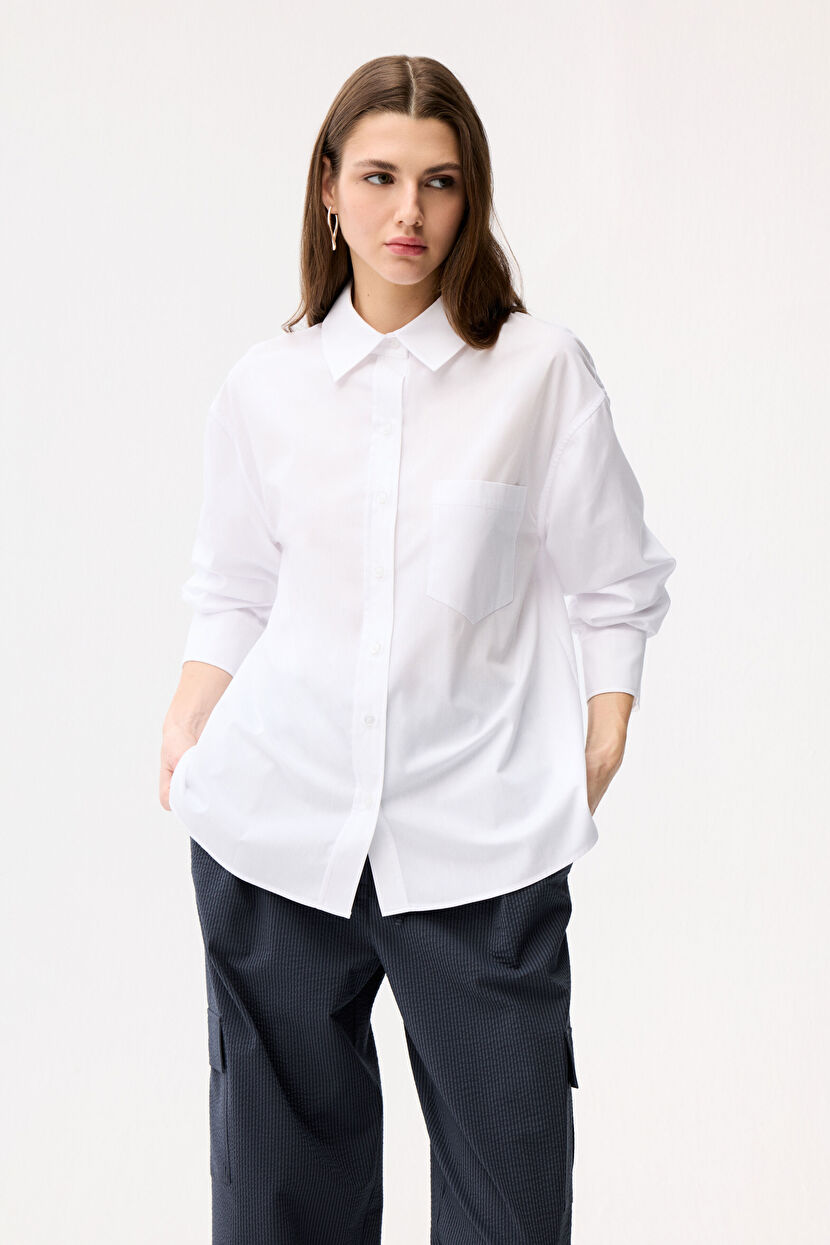 Beyaz Kolu Detaylı Gömlek
