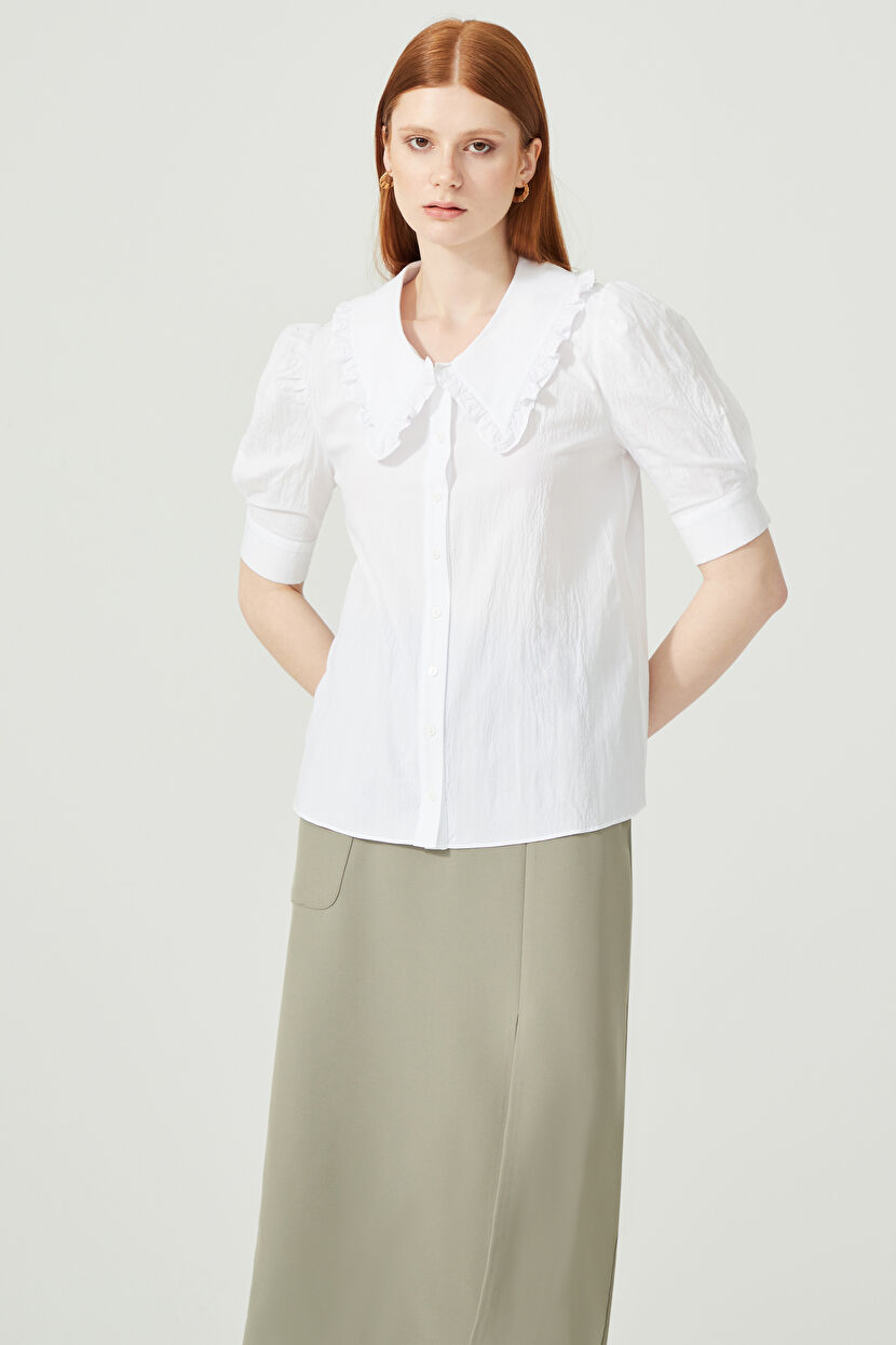 Beyaz Yakası Fırfırlı Balon Kollu Gömlek