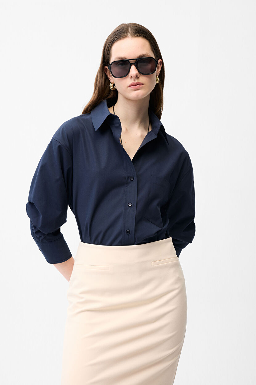 Lacivert Kolu Detaylı Gömlek
