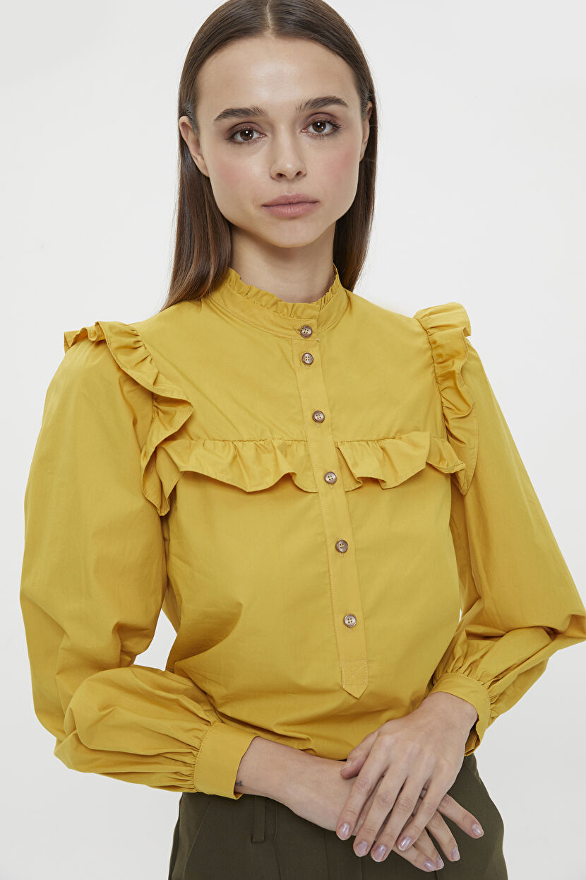 Sarı Hakim Yaka Volanlı Uzun Kol Gömlek