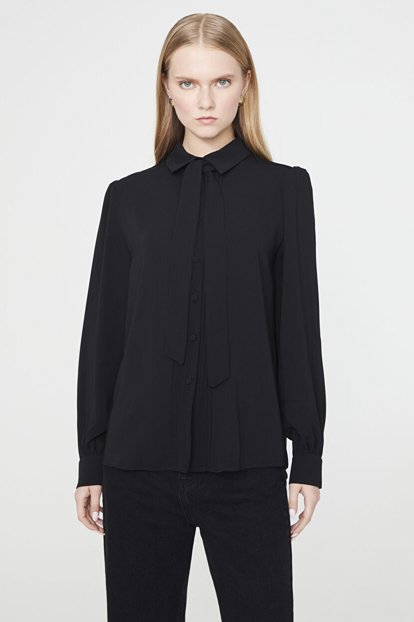 Siyah Uzun Kollu Nervürlü Gömlek