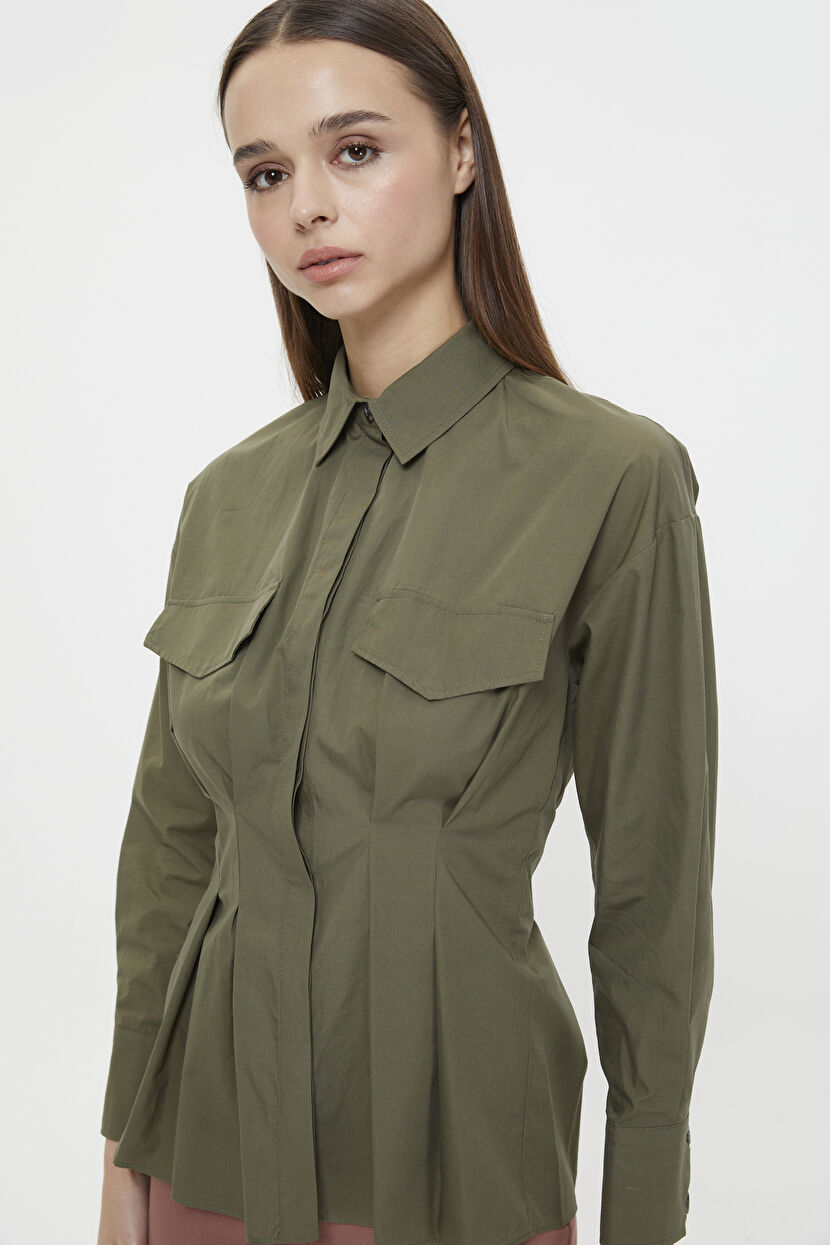 Yeşil Erkek Yaka Beli Oturan Pileli Gömlek